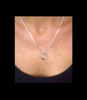 Een halsketting met twee fijne cirkels die zachtjes in elkaar vallen.