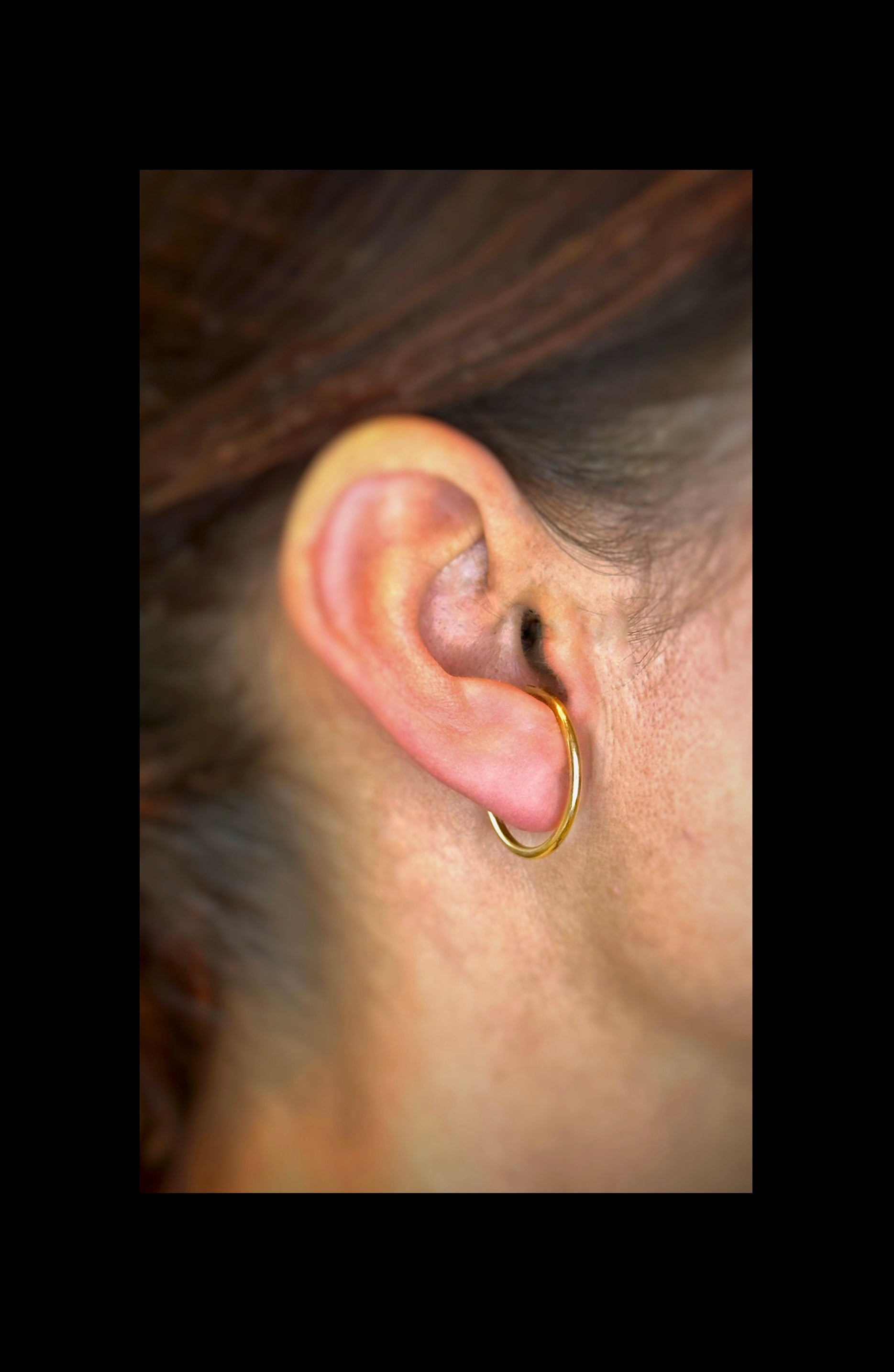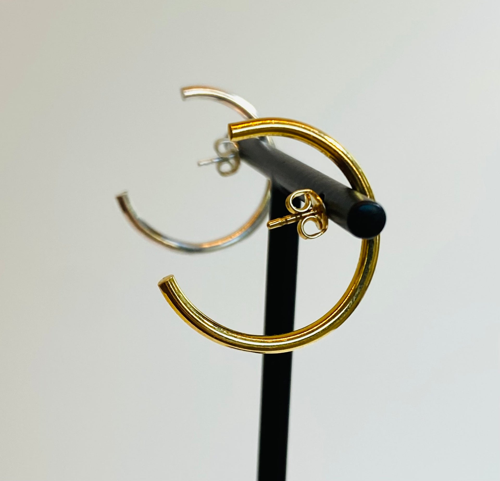 De Lunar hoop oorbel heeft het uitzicht van een open halve maan die elke look laat stralen.